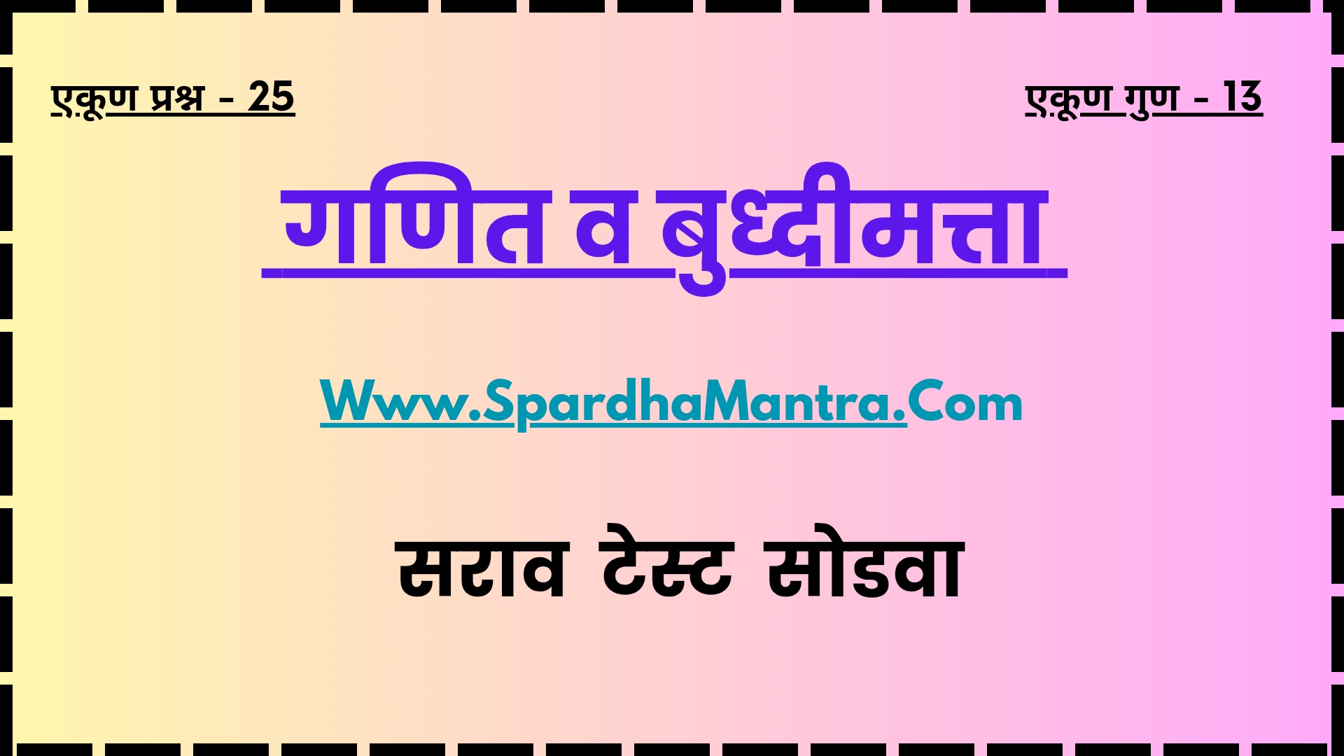 ą¤¶ą¤æą¤ą„ą¤·ą¤£ą¤¾ą¤¬ą¤¦ą„ą¤¦ą¤² ą¤øą¤°ą„ą¤µ ą¤ą¤¾ą¤¹ą„, ą¤ą¤„ą„ą¤… ą¤ą¤¾ą¤²ą„ ą¤ą¤”ą¤¾ą¤®ą„ą¤”ą„ ą¤øą„ą¤Ŗą¤°ą„धा ą¤Ŗą¤°ą„ą¤ą„षा ą¤ą„ą¤øą„ą¤ ą¤Øą¤µą„ą¤Ø सराव ą¤ą„ą¤øą„ą¤ ą¤Øą„ą¤ą¤°ą„ ą¤ą¤¾ą¤¹ą¤æą¤°ą¤¾ą¤¤ą„ सराव ą¤Ŗą„ą¤°ą¤¶ą„ą¤Øą¤Ŗą¤¤ą„ą¤°ą¤æą¤ą¤¾ ą¤øą„ą¤Ŗą¤°ą„धा ą¤Ŗą¤°ą„ą¤ą„षा ą¤ ą¤ą„ą¤Æą¤¾ą¤øą¤ą„रम ą¤øą¤°ą¤ą¤¾ą¤°ą„ ą¤Æą„ą¤ą¤Øą¤¾ PDF Zone (ą¤®ą¤¹ą¤¤ą„ą¤µą¤¾ą¤ą„या ą¤«ą¤¾ą¤ą¤²) Results (ą¤Øą¤æą¤ą¤¾ą¤²) Admit Cards (ą¤Ŗą„ą¤°ą¤µą„ą¤¶ą¤Ŗą¤¤ą„ą¤°ą„) Age Calculator (वय ą¤®ą„ą¤ą¤¾) BMI Calculator (ą¤¬ą„ą¤”ą„ ą¤®ą¤¾ą¤ø ą¤ą¤ą¤”ą„ą¤ą„स) ą¤Øą¤µą„ą¤Ø ą¤ą„ą¤øą„ą¤ by Spardha Mantra | March 30, 2026 Math and Intelligence Practice Test Paper | ą¤ą¤£ą¤æą¤¤ व ą¤¬ą„ą¤§ą„ą¤¦ą„ą¤®ą¤¤ą„ता विषय सराव ą¤ą„ą¤øą„ą¤ ą¤øą„ą¤”वा – 6 by Spardha Mantra | March 27, 2026 ą¤®ą¤¹ą¤¾ą¤°ą¤¾ą¤·ą„ą¤ą„र ą¤ą¤¤ą¤æą¤¹ą¤¾ą¤ø सराव ą¤ą„ą¤øą„ą¤ ą¤øą„ą¤”वा | Maharashtra History Practice Test Paper | History Paper – 7 by Spardha Mantra | March 24, 2026 ą¤ą¤ą„ą¤ ą¤Øą„ą¤Æą¤¾ą¤Æą¤¾ą¤²ą¤Æ ą¤ą¤°ą¤¤ą„ सराव ą¤ą„ą¤øą„ą¤ ą¤øą„ą¤”वा |Ā High Court Practice Test Paper | 4 by Spardha Mantra | March 20, 2026 ą¤ą¤ą„ą¤ ą¤Øą„ą¤Æą¤¾ą¤Æą¤¾ą¤²ą¤Æ ą¤¶ą¤æą¤Ŗą¤¾ą¤ ą¤ą¤°ą¤¤ą„ सराव ą¤ą„ą¤øą„ą¤ ą¤øą„ą¤”वा | High Court Peon Practice Test Paper | 3 by Spardha Mantra | March 18, 2026 ą¤Ŗą¤ą¤ą¤¾ą¤Æą¤¤ą¤°ą¤¾ą¤ सराव ą¤ą„ą¤øą„ą¤ ą¤øą„ą¤”वा | Panchayat Raj Practice Test ! Panchayat Raj Practice Test Question Paper ! – 2 by Spardha Mantra | March 13, 2026 ą¤øą¤¾ą¤®ą¤¾ą¤Øą„ą¤Æą¤ą„ą¤ą¤¾ą¤Ø विषय ( GK ) ą¤ą„ą¤øą„ą¤ ą¤øą„ą¤”वा | General knowledge Practice Test Paper | Gk Test – 5 by Spardha Mantra | March 10, 2026 MPSC ą¤ ą¤°ą„ą¤„ą¤¶ą¤¾ą¤øą„ą¤¤ą„र सराव ą¤ą„ą¤øą„ą¤ | Economics Practice Test for MPSC Exam 2026 | Economics Practice Test | ą¤ ą¤°ą„ą¤„ą¤¶ą¤¾ą¤øą„ą¤¤ą„र सराव ą¤ą„ą¤øą„ą¤ ą¤øą„ą¤”वा – 2 by Spardha Mantra | March 8, 2026 ą¤ą¤¤ą¤æą¤¹ą¤¾ą¤ø विषय सराव ą¤ą„ą¤øą„ą¤ ą¤øą„ą¤”वा | History Practice Test Paper |Ā History Paper – 6 by Spardha Mantra | March 5, 2026 ą¤¬ą„ą¤¦ą„ą¤§ą¤æą¤®ą¤¤ą„ą¤¤ą¤¾ सराव ą¤ą„ą¤øą„ą¤ | Intelligence Practice Test – 2 Read More ą¤Øą„ą¤ą¤°ą„ ą¤ą¤¾ą¤¹ą¤æą¤°ą¤¾ą¤¤ą„ by R S | October 30, 2025 ą¤®ą„ą¤ ą„ ą¤¬ą¤¾ą¤¤ą¤®ą„ ! ą¤®ą¤¹ą¤¾ą¤°ą¤¾ą¤·ą„ą¤ą„र ą¤Ŗą„ą¤²ą„स ą¤ą¤°ą¤¤ą„ ą¤ ą¤°ą„ą¤ ą¤øą„ą¤°ą„ ą¤ą¤ą¤ ą¤¤ą„ą¤®ą¤ą¤¾ ą¤ą¤Øą¤²ą¤¾ą¤ą¤Ø ą¤«ą„ą¤°ą„म ą¤ą¤°ą„न ą¤ą„या : Police Bharti 2025 by Spardha Mantra | October 26, 2025 ISRO SDSC SHAR Bharti 2025: ą¤øą¤¤ą„ą¤¶ धवन ą¤øą„ą¤Ŗą„स ą¤øą„ą¤ą¤ą¤° ą¤Æą„ą¤„ą„ 141 ą¤ą¤¾ą¤ą¤¾ą¤ą¤øą¤¾ą¤ ą„ ą¤ą¤°ą¤¤ą„ Read More