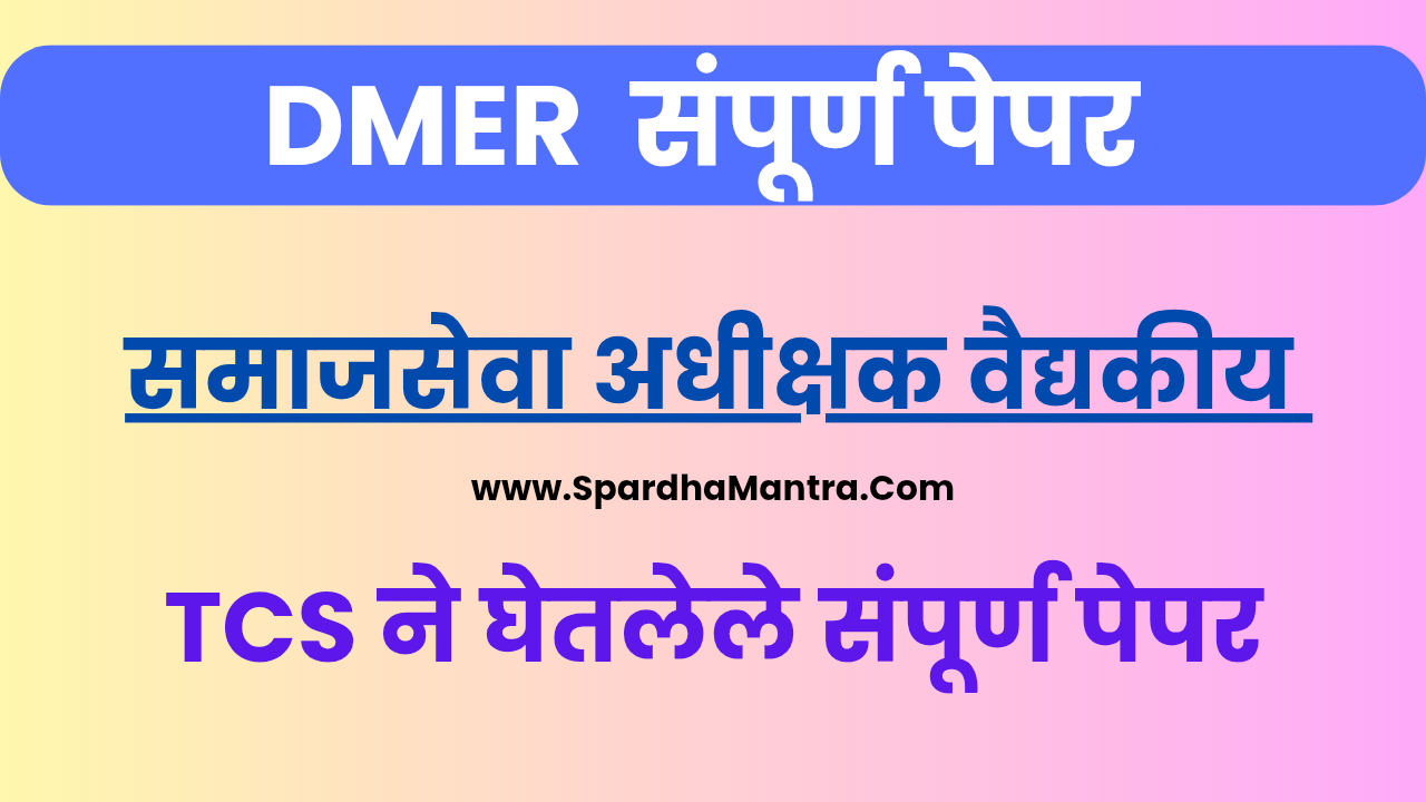 DMER समाजसेवा अधीक्षक वैद्यकीय भरती 2025 – रिस्पॉन्स शीट व संपूर्ण पेपर्स उपलब्ध.